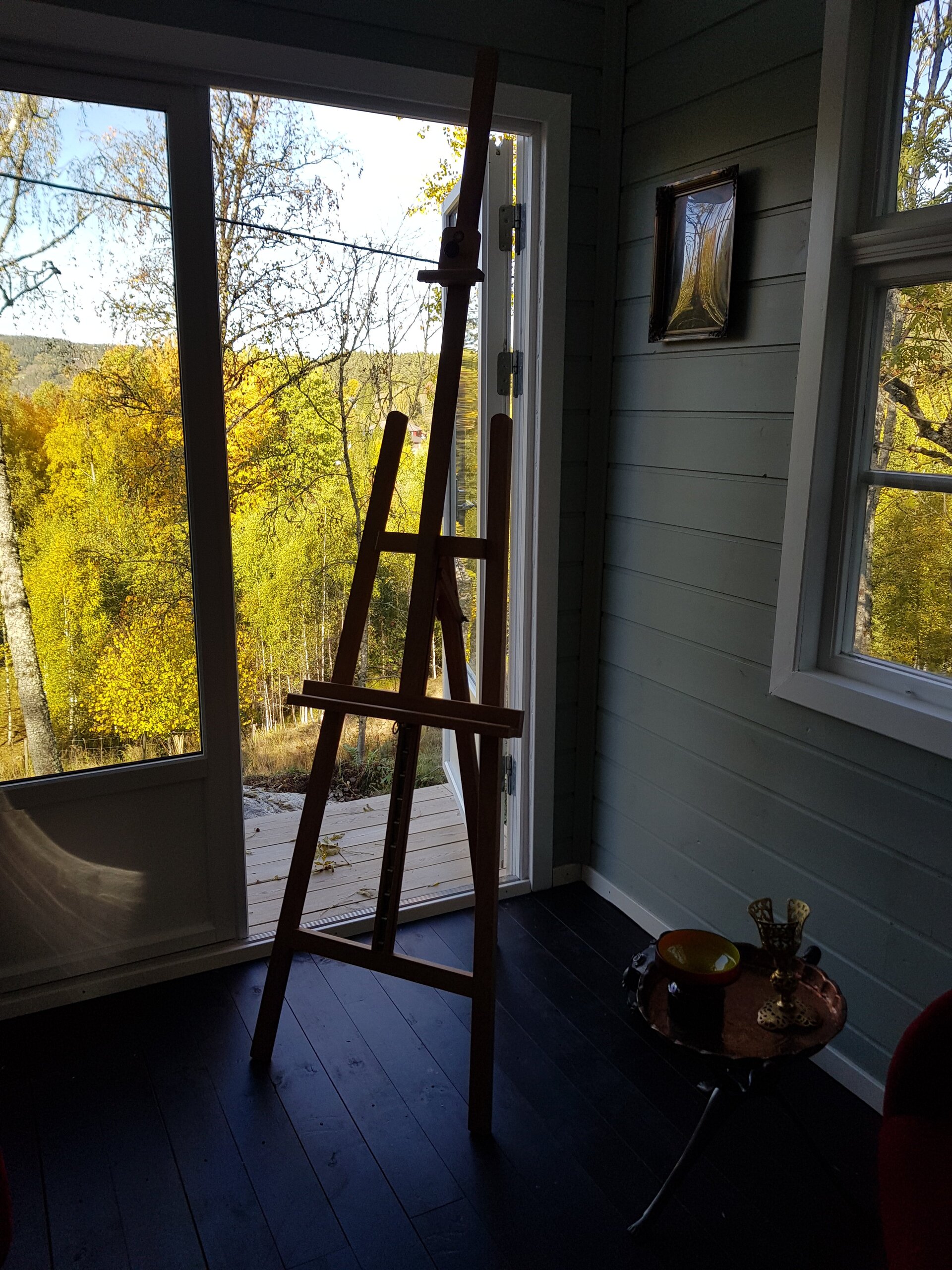 Ellers arbeides det her hjemme på Rotnes i Nittedal, der spesielt Marka gir inspirasjon. I 2018 er det planen at et lite atelier skal stå ferdig ved vår husmannsplass, Køya, ved Varteig i Østfold. Her er det en nydelig utsikt over kulturlandskapet og Glomma. Gleder meg.